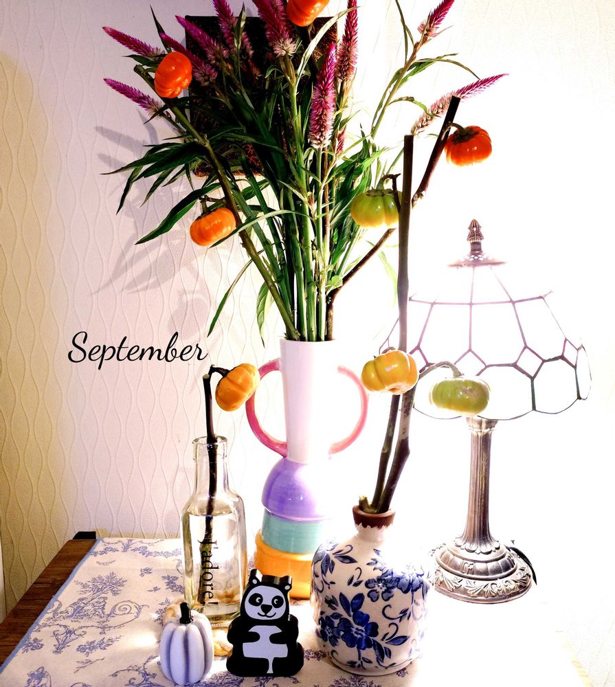 喫茶店の帰りに寄った産直でケイトウとソラナムパンプキンの切り花を買って飾ってみました😊