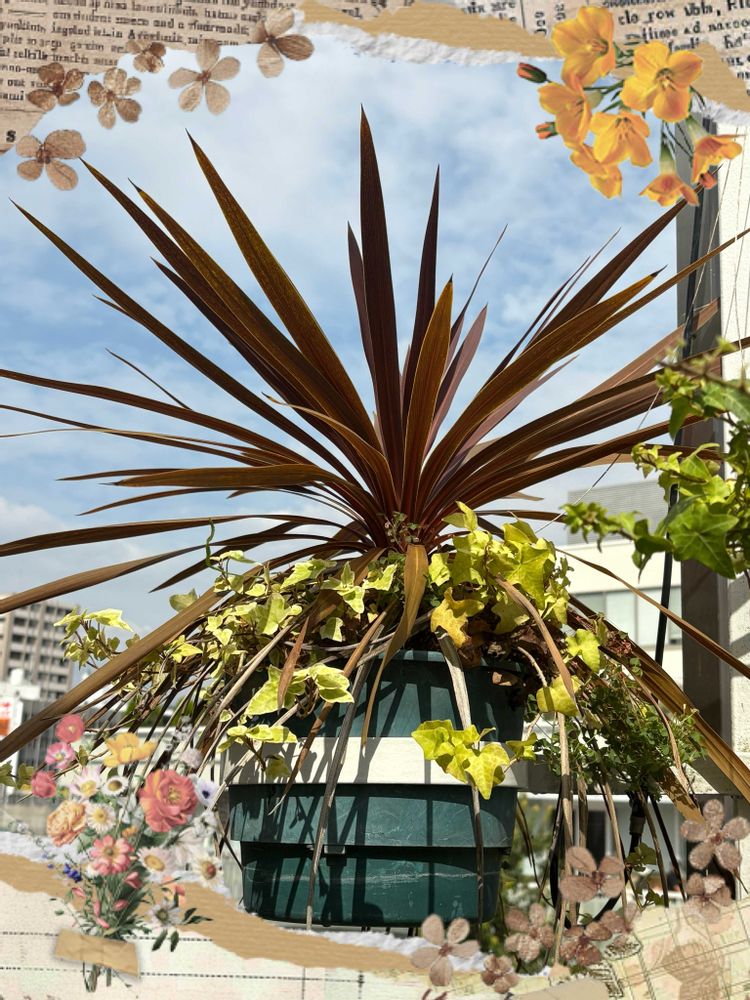 ③今日お出かけ先で見たハンギングで調べてみたら コルジリネ オーストラリスレッドスター という名前のようで 赤いコルジリネは初めて見ました👀❣️