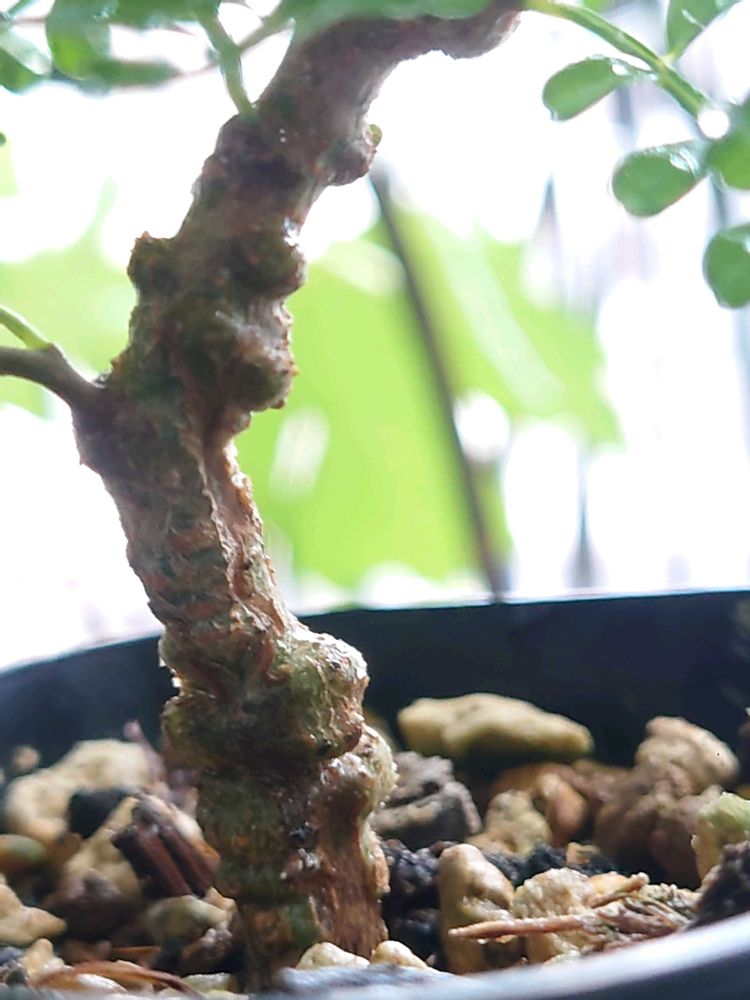 この鉢はプラステラ90ロングなので径は78mmだと、枝の太さと言うか細さがわかると思うんですけど、この太さで既にゴツゴツです❣️