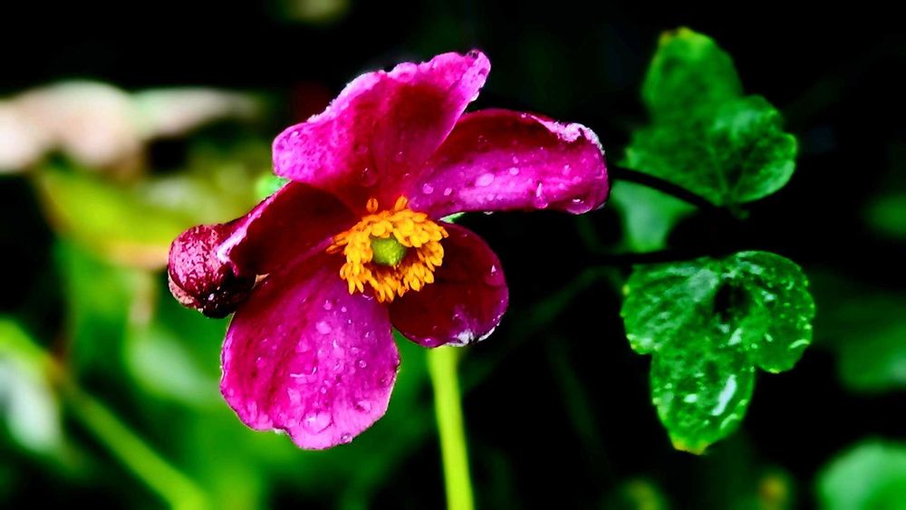 小さな庭の秋明菊が開花しました。
