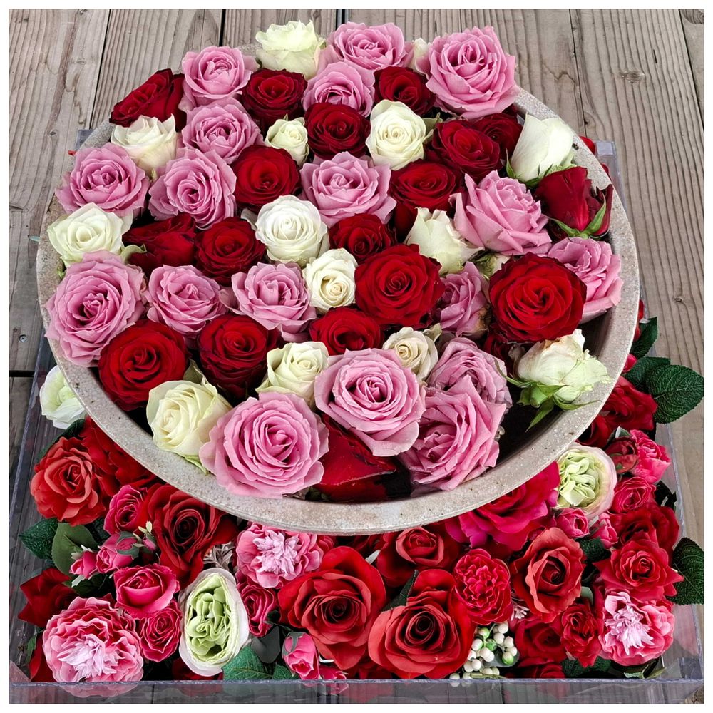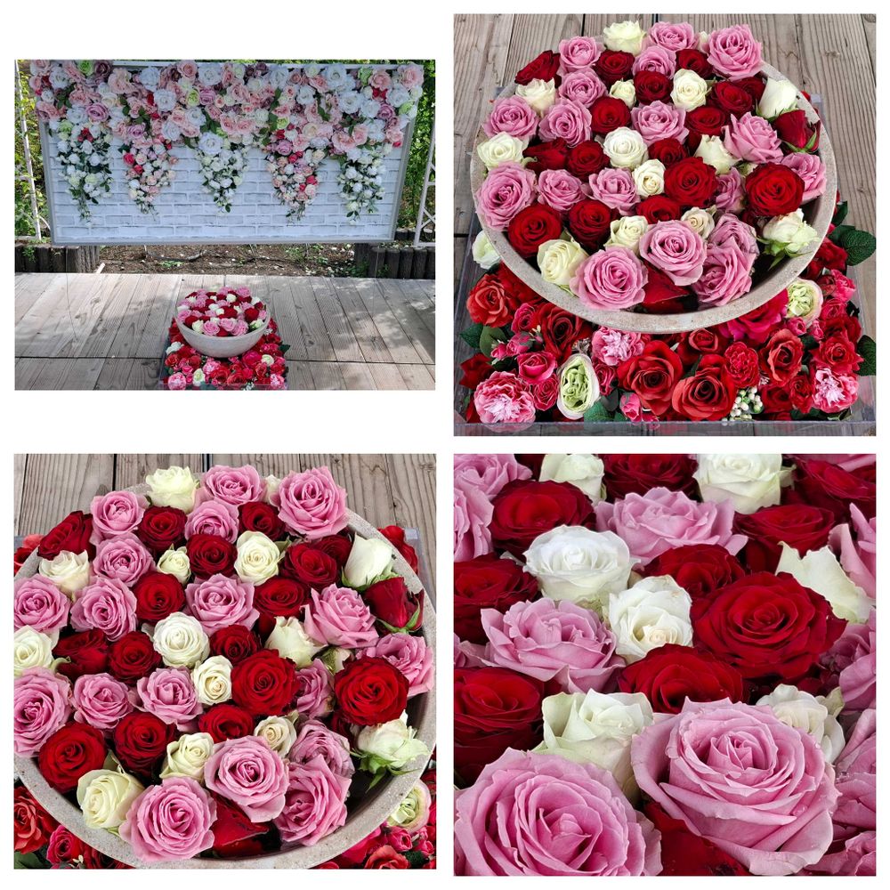 流石、薔薇🌹。まだ開ききらない綺麗なうちに花手水。ため息でる美しさだなぁ💓