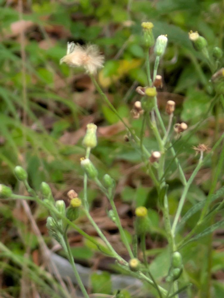 ヒメムカシヨモギが咲いて来たと近寄ると、そばで背の低いオオアレチノギクが冠毛になって終わりかけています😳
