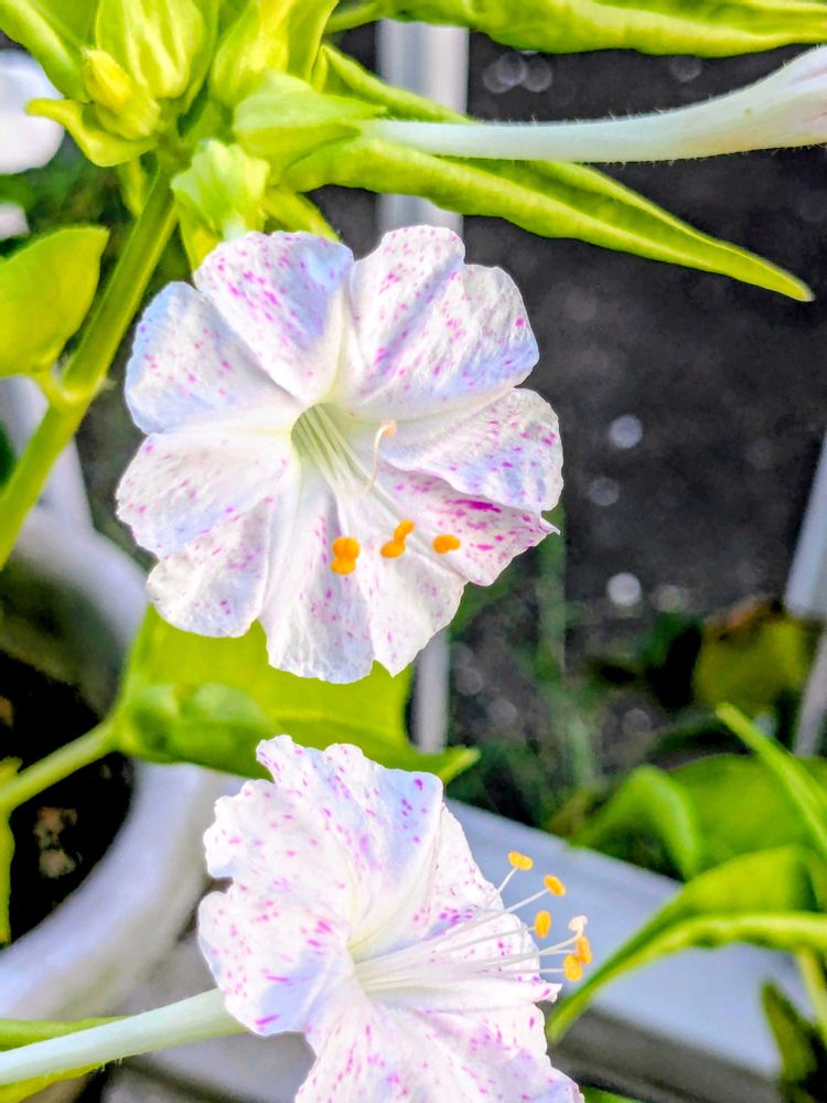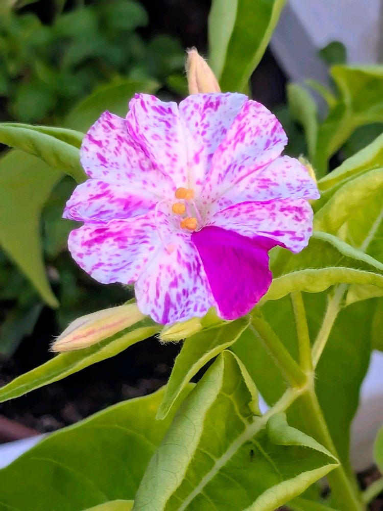 染め分けと絞りの華やかなオシロイバナ咲きました‼️
