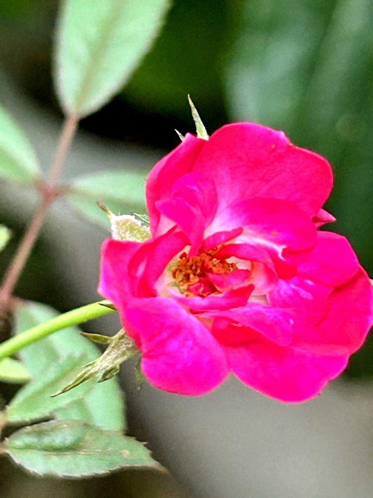 ミニバラがポチポチと咲いてくれます🤗春より色が濃いように思います🌿🌹🌿