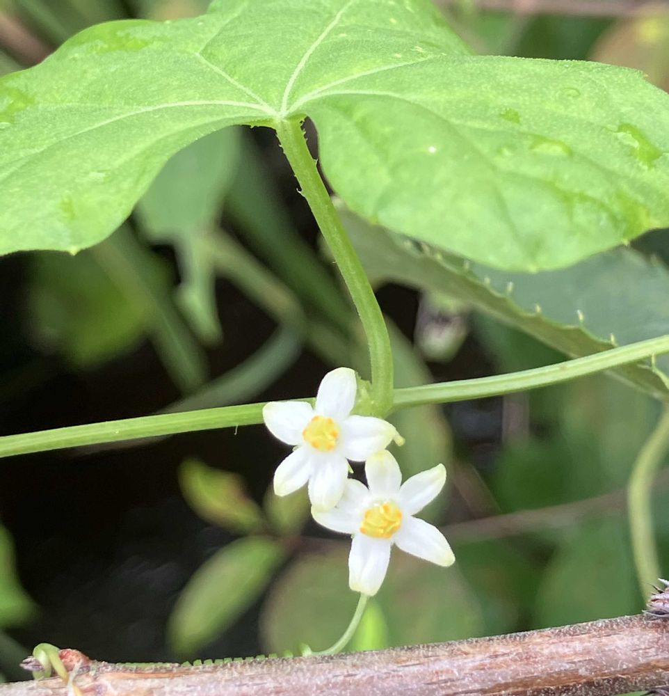 お花と一緒に丸い実があって、スズメウリとわかりました🎶