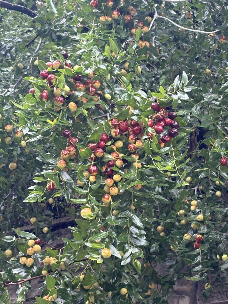 大きなナツメの木に びっしり重くなり垂れたナツメに遭遇