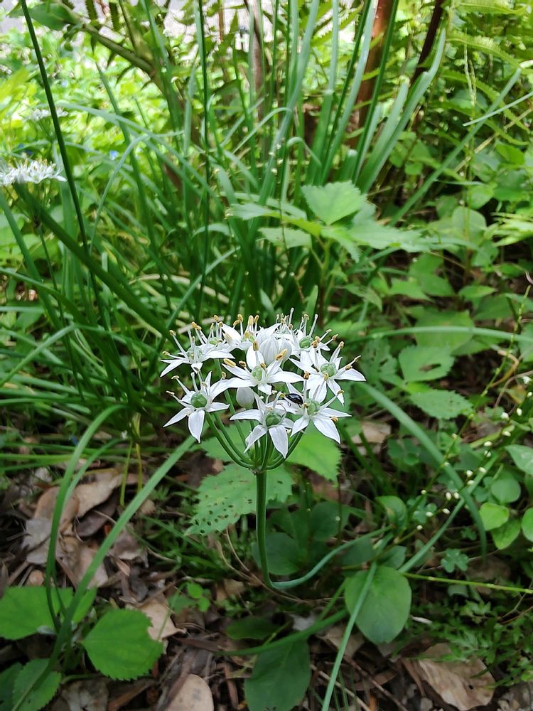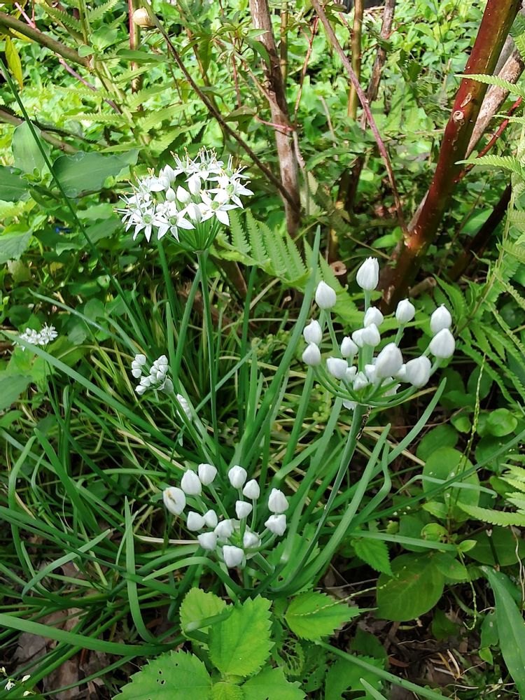 夏のあいだ、ほったらかしで荒れ果てた庭の片隅にひっそりと花ニラが咲いています