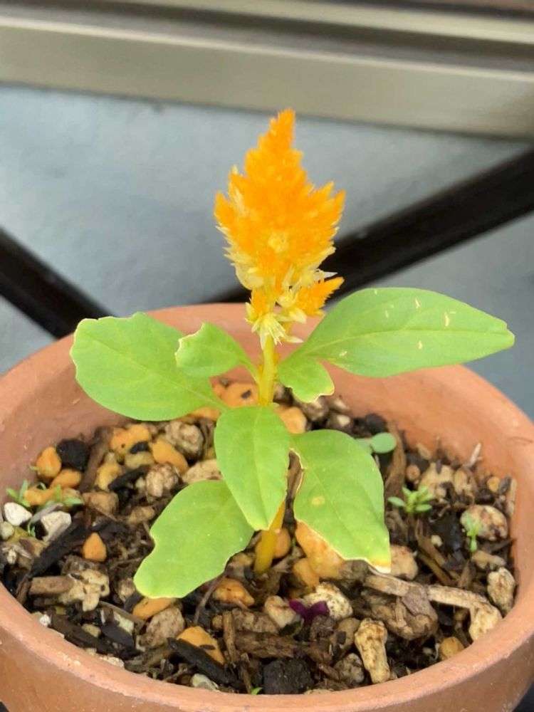 去年室内で並べていたブルーウィングの鉢にケイトウのタネが飛んで育っていたのかな?
