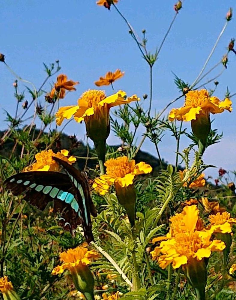 タイミングよくカラフルな🦋さんが遊びにきてくれたマリーさん😊