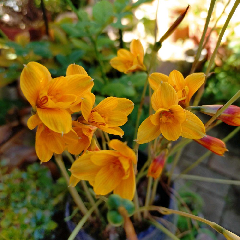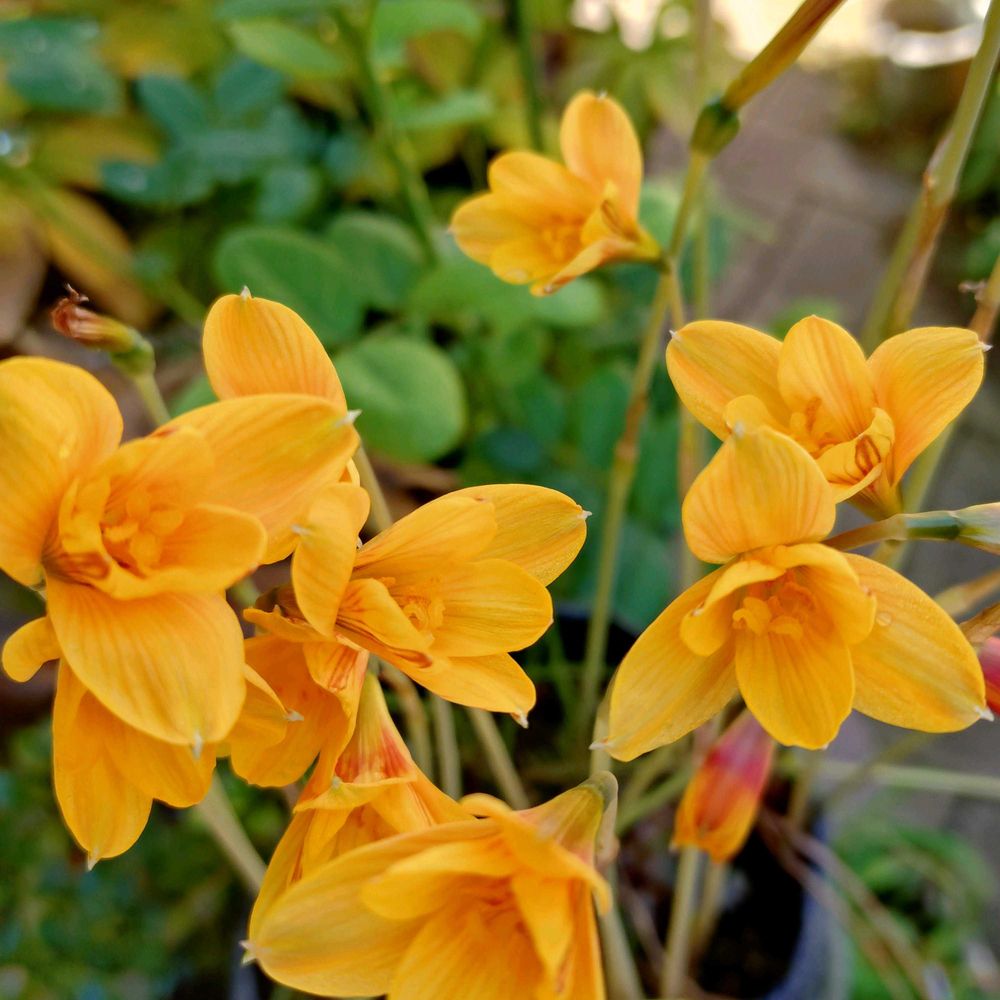 ポツンポツンと咲き初めてたのに、沢山咲き初めたハブランサスたち💛🧡💛