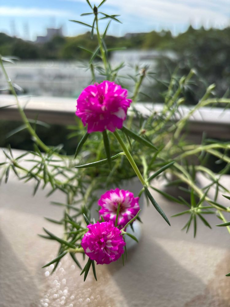 秋らしく、涼しくなってきてから一昨日の朝撮影ですが、なかなか咲かなかったマツバボタンが3輪開花していました🩷🩷🩷