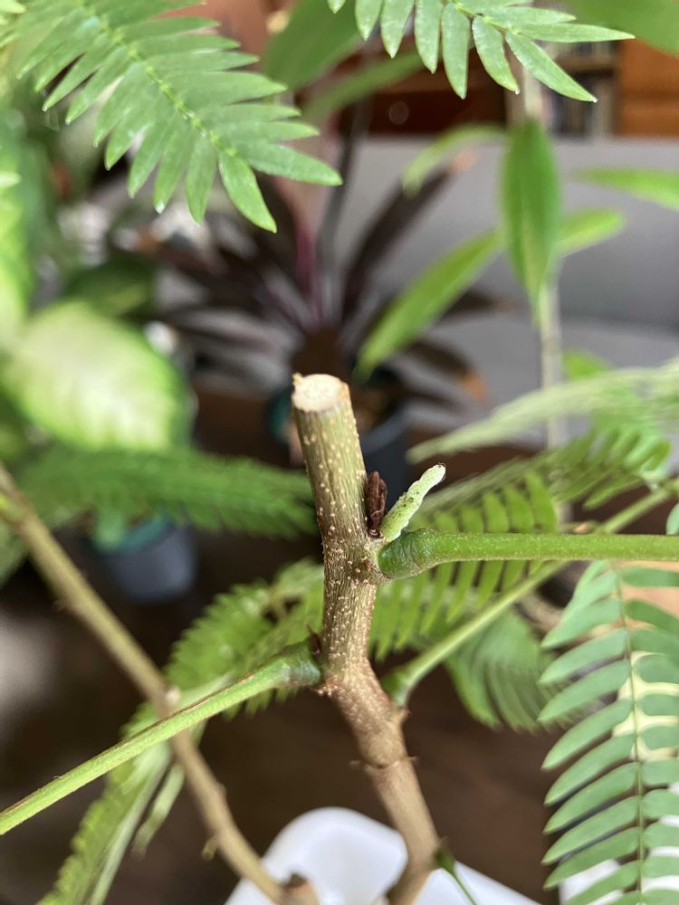 今月頭に初剪定してから3週間で剪定したところから新芽🌱動いてきたぁ👍😁ただ黒い芽の脇から緑の芽が動いてきたんだが?