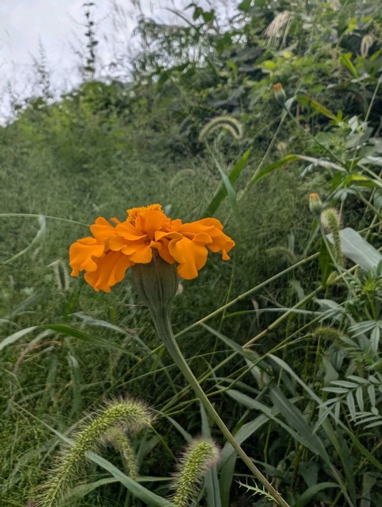 民家があるのでマリーゴールドはこぼれ種なんでしょうね🧡