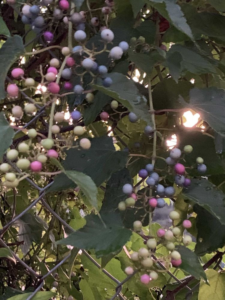 カラフルな野葡萄さんひとつひとつ日にあたって良い風景ですね⚪🟤🟣🟢🔵