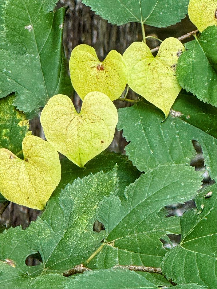 このハートの葉っぱも見た感じ似てますが カツラよりも葉が大きくて濃い緑の葉っぱの枝にツルで巻きついているので 残念ながら違うみたいです😅