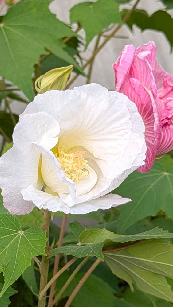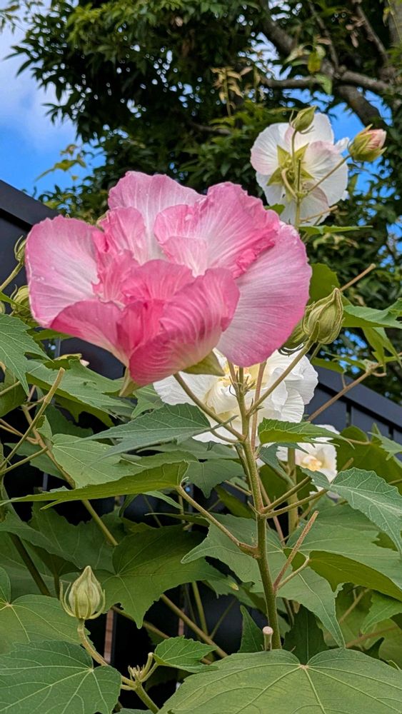 昨日方向音痴の私は住宅街に迷い込みナビの地図を見ても抜けられないでウロウロ🤣のお陰でこんな素敵な酔芙蓉にお会い出来ました🤗と、言う事で