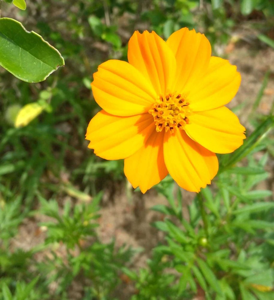 白やピンクのコスモスにはまだ出会っていませんが、緑の葉っぱに囲まれて黄色い花が目立ちます❣️