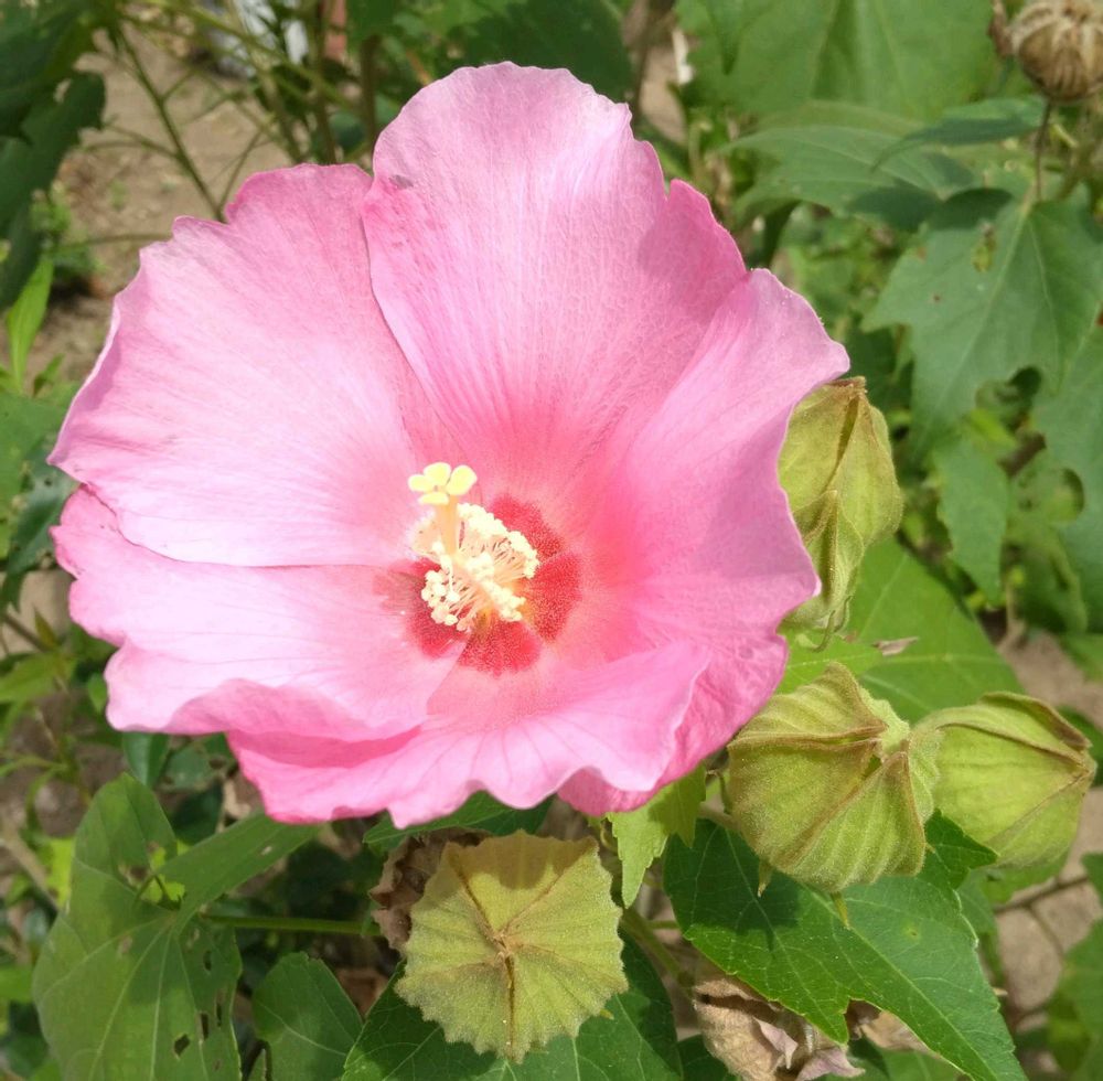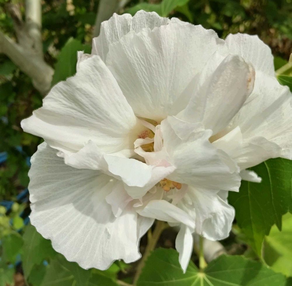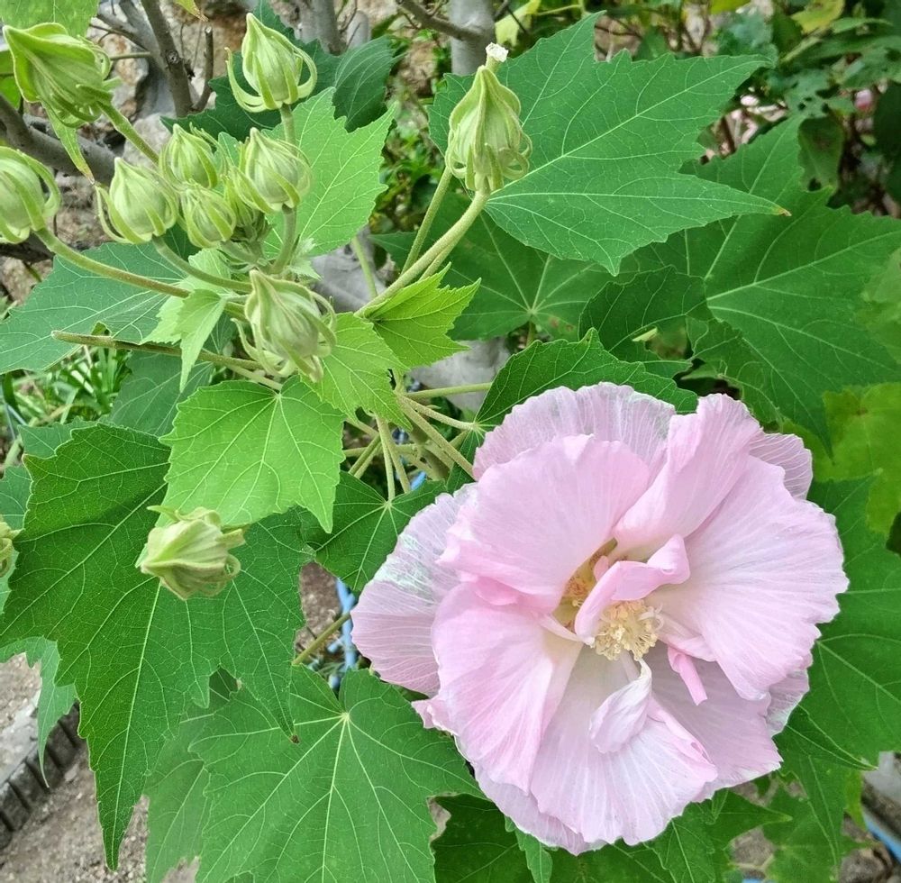 ムクゲだと思っていましたが、雌蕊の先が5つに分かれているし、葉っぱも手のひら程の大きさなのでフヨウでした‼️
