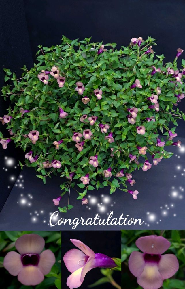 玄関先の塀で、色違いさんと一緒に並んでる「PW スーパートレニアカタリーナラムレーズン💜」で、お祝いさせて貰いますね~💜💚