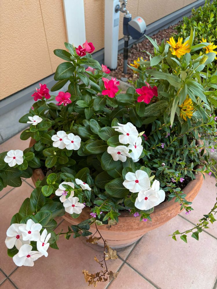 ②後ろから撮ると🤳、2色のニチニチソウ🤍🩷も植えられていました👍✨