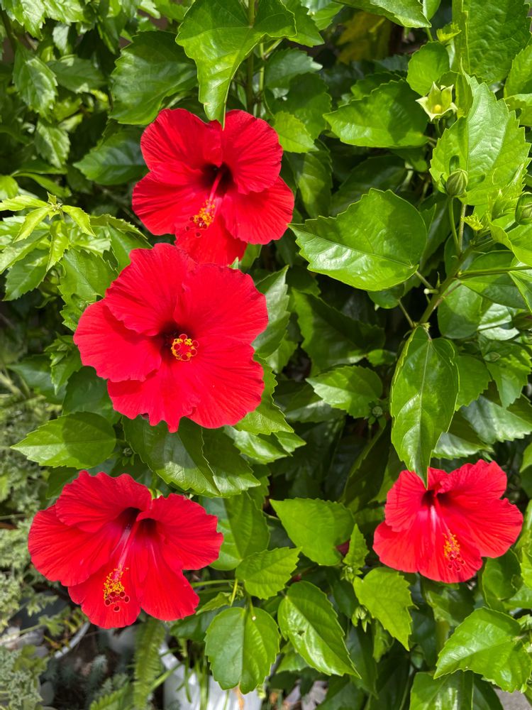 ③真っ赤なハイビスカス🌺が職場の近くのお家🏠の前で咲いていました。狭い所で賑やかに❤️❤️❤️❤️咲いています。
