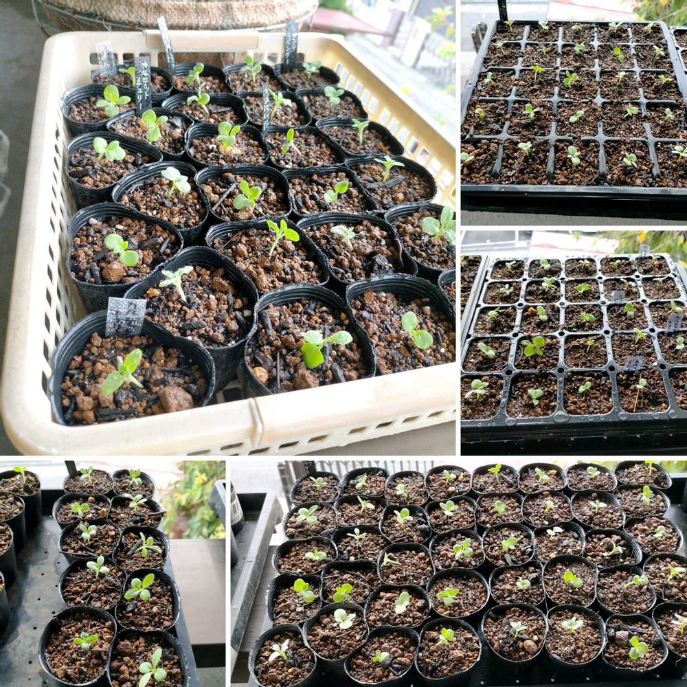 【5枚目】ストックはまだたくさんあります。残すはベイビーだったかな。数えたら300弱あったわ😱 一重らしきものを抜いたとしてもあと150近くポット上げするのかー。がんばらねば!💪