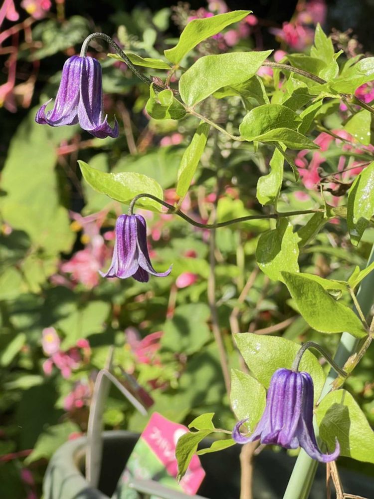 クレマチス💜さんて枝がか細いですね🤗お花は下を向いてまるで街路灯のようですね❣️🕯️