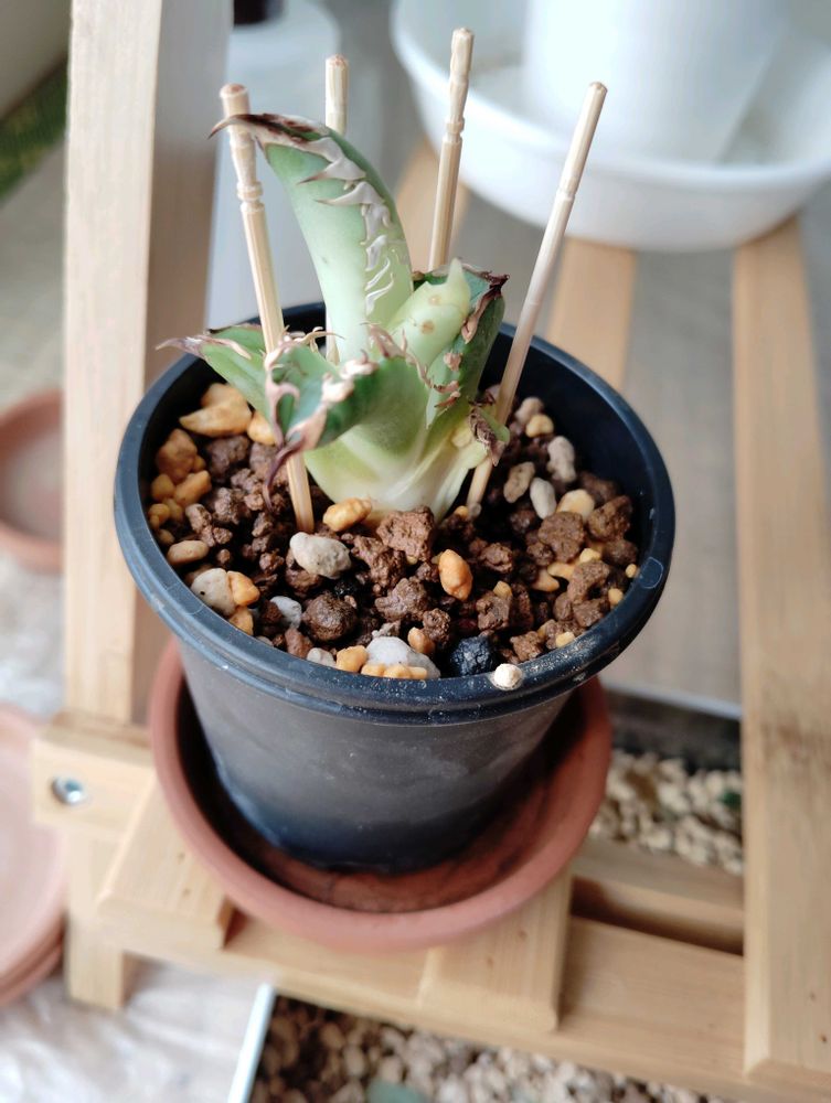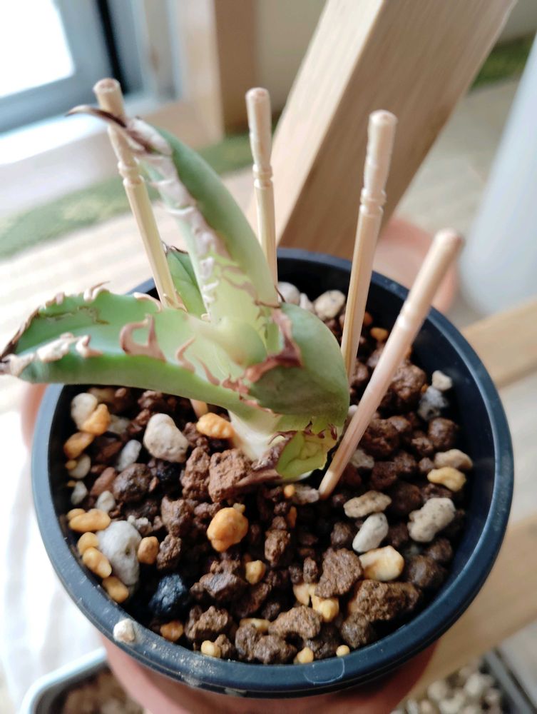 根無しの子なので発根管理してます。水栽培で比較的早めにちびっと発根したので即土で腰水管理に切り替えました。