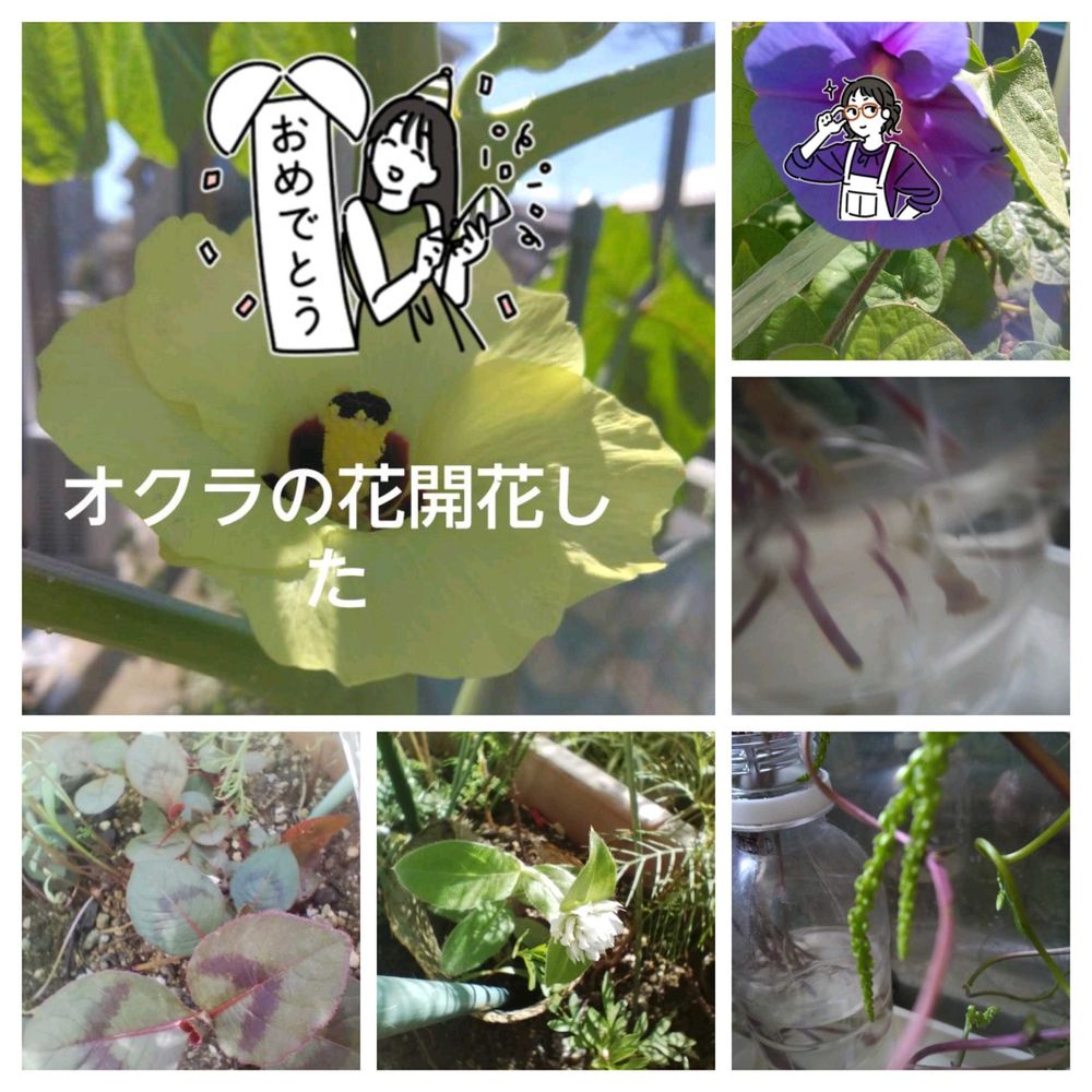2⃣ ↖️オクラの花?トロロアオイの花? 識別出来ず、ようやく花が見られた🧐🤗