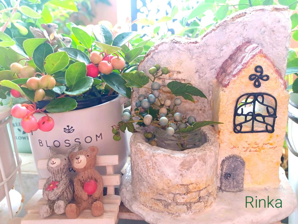 小瓶を井戸に入れてノブドウを飾ってみました🍇