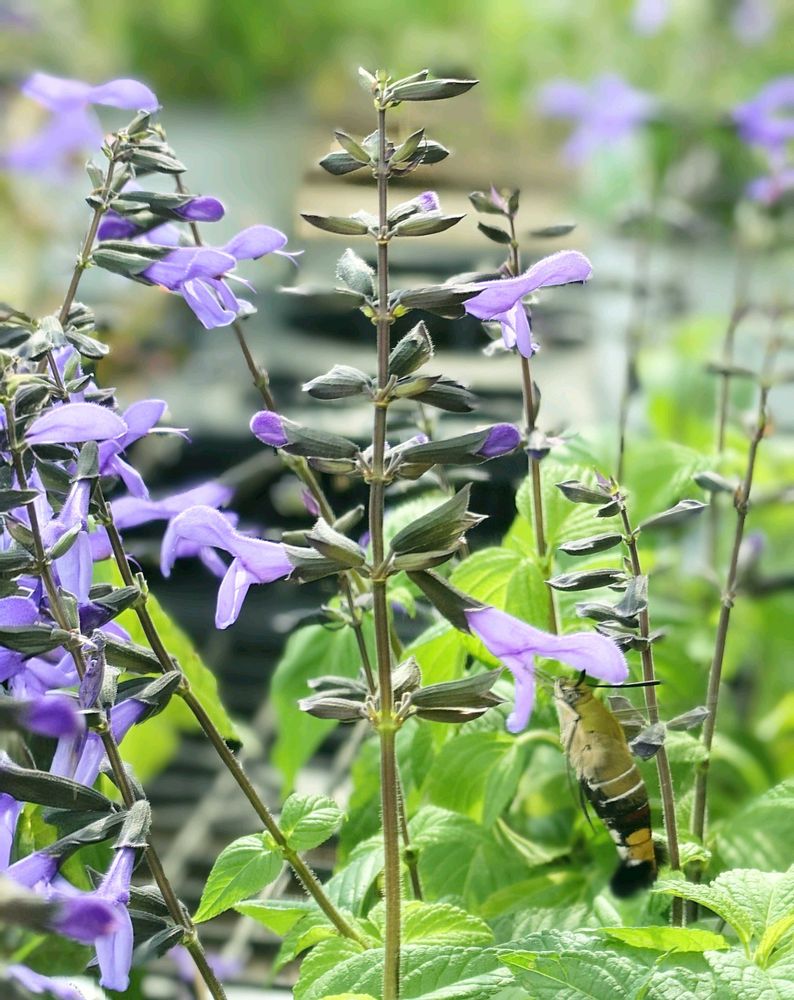 花壇のサルビアの花にオオスカシバが飛んで来ました。