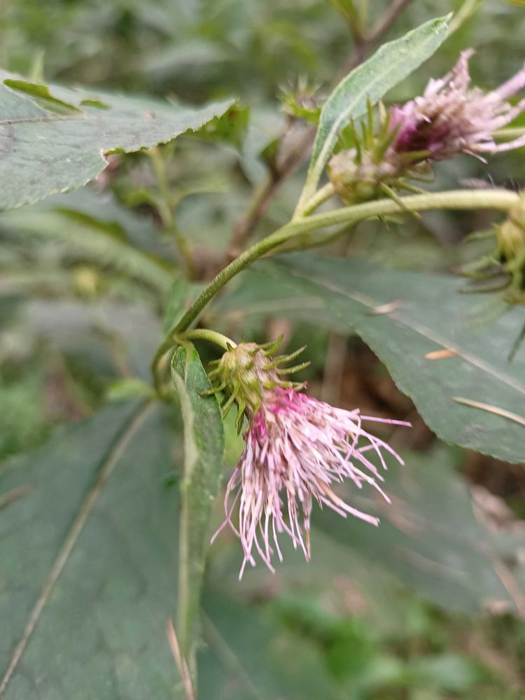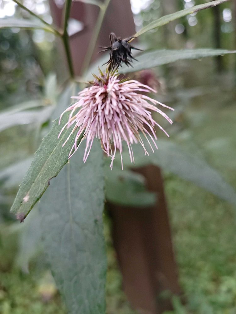 まこちゃん〜こんなアザミもあるんだね〜アザミらしくない葉っぱ🌿なんでビックリ〜お花は小さくて可愛い(コウヤボウキみたい?🤭💕)