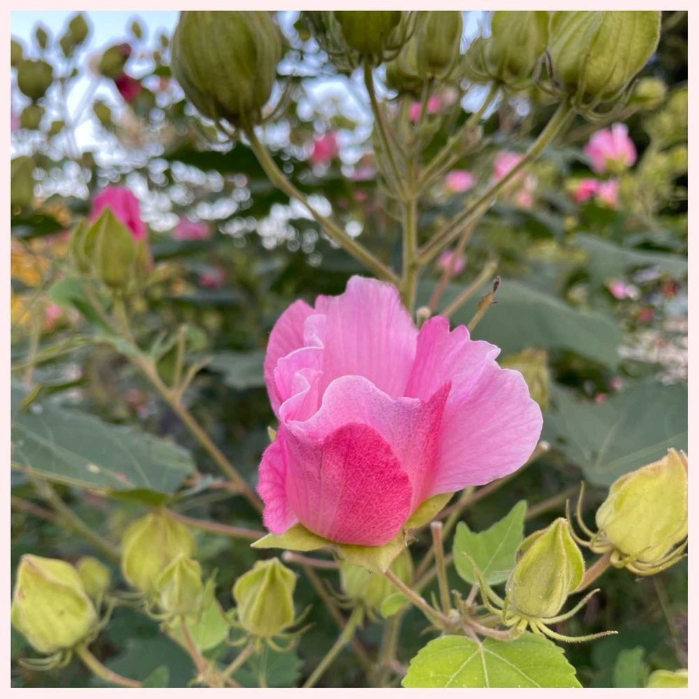 実家の庭先から〜ボタンクサギの蕾ちゃんと酔芙蓉が満開♬とってもキレイでした😍