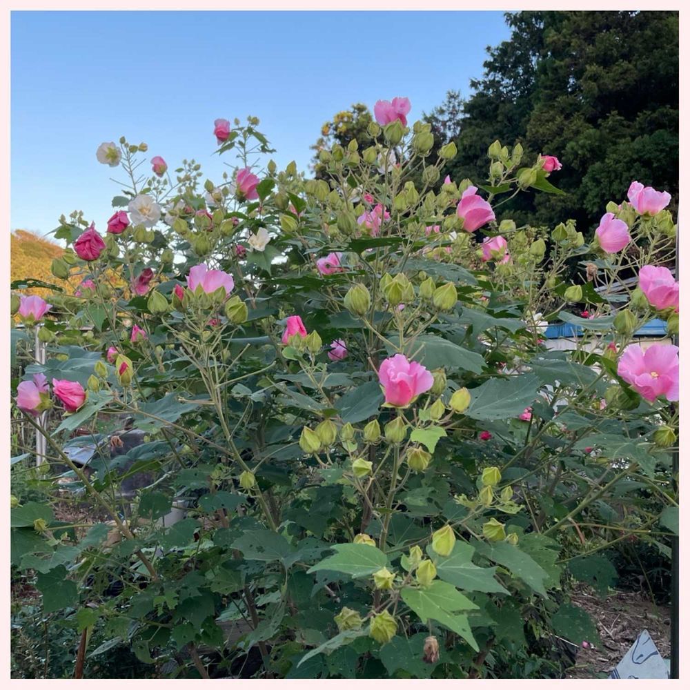 酔芙蓉も見上げるほど〜大きくてお花がたくさん咲いてました♬仕事帰りなので夕方です〜もっと赤くなるのでしょうか〜🤔