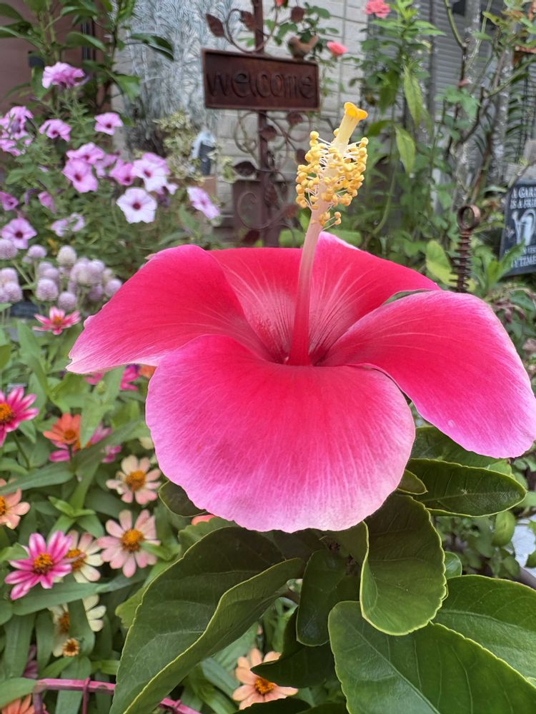 そうなのよ、ハイビスカスが咲いた途端にお庭がぱ〰️って明るくなるのよ!