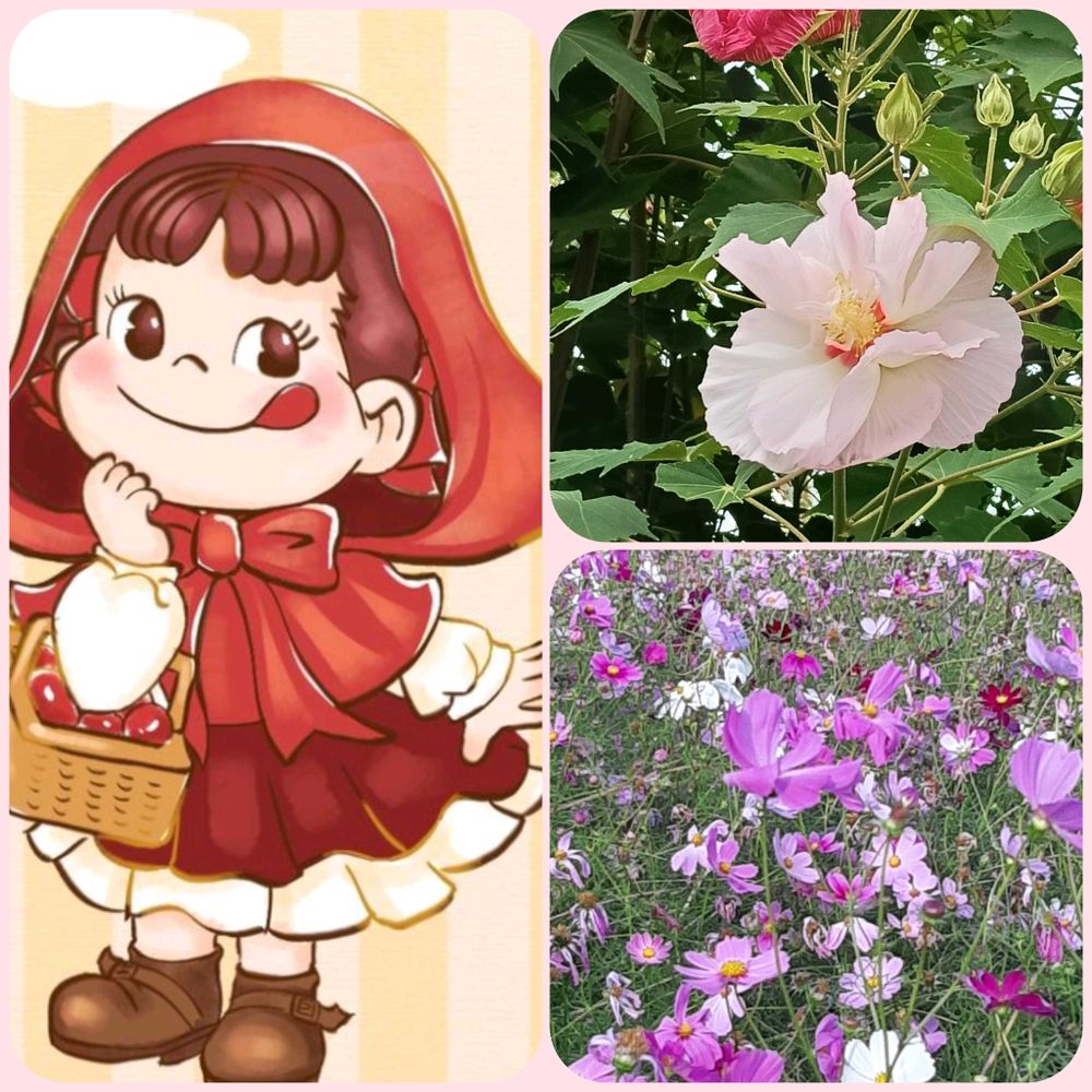 おはようございます!フヨウとコスモスと可愛いぺこちゃん見つけました♥