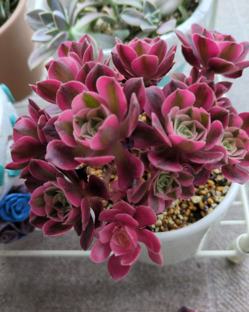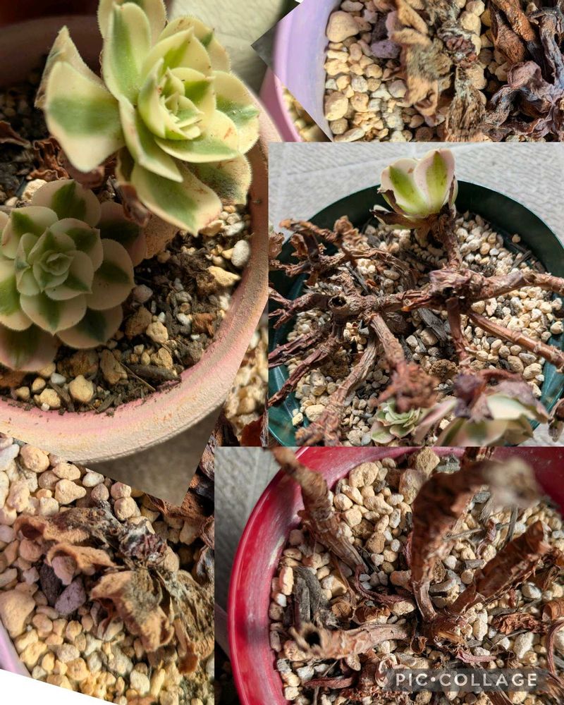 枯れる前のピンクウィッチさん達猛暑を乗り越えられず枯れてしまったピンクウィッチ達去年も枯れ今年こそはと沢山春にお迎えして水も控え夏越しをと頑張ったけど全てかれました!枯れる前のウィッチさん達(枯れ果てた鉢5枚目)