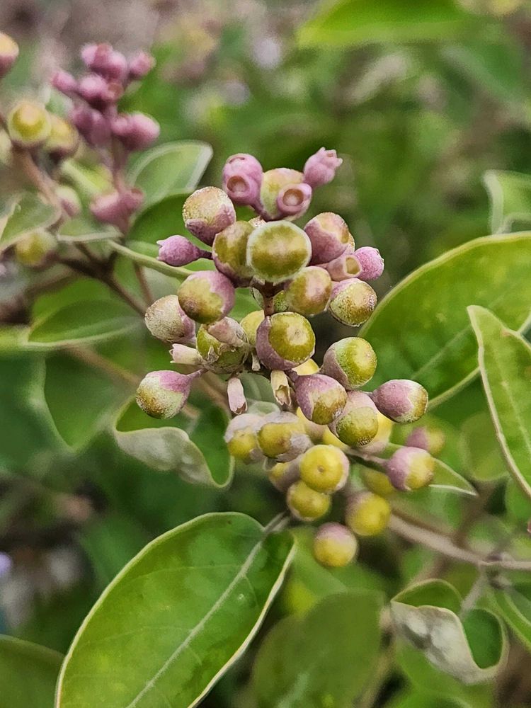 ミツバハマゴウの花と早く咲いた枝に実が付きました😄