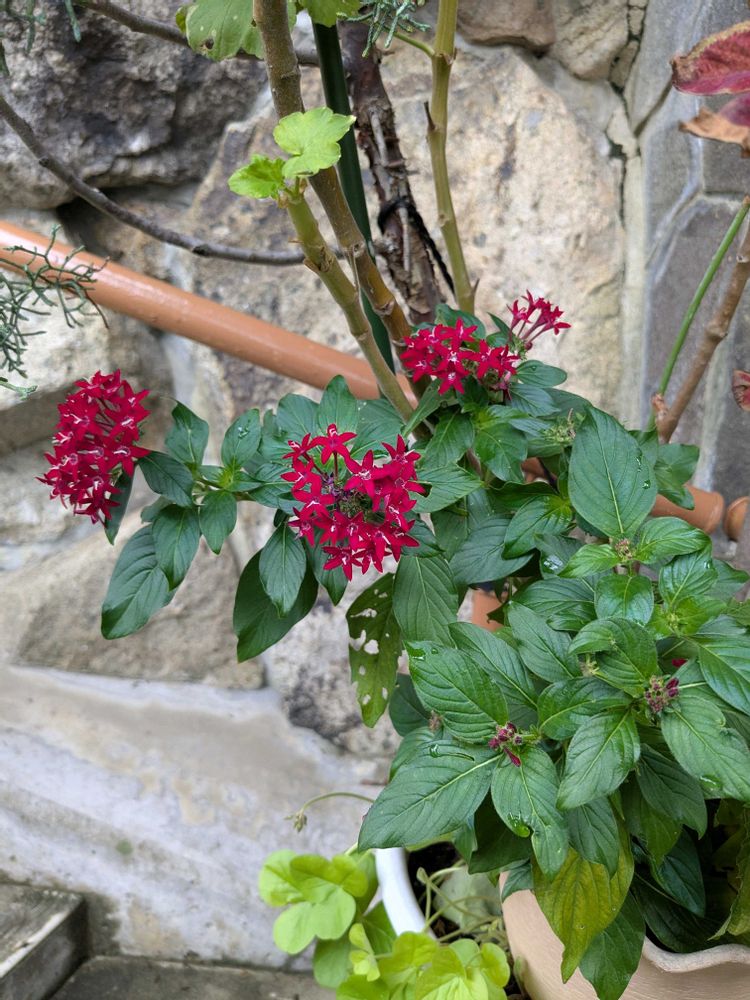 寄せ植え赤い花ペンタスも次々と長期間咲いてる〜🎶