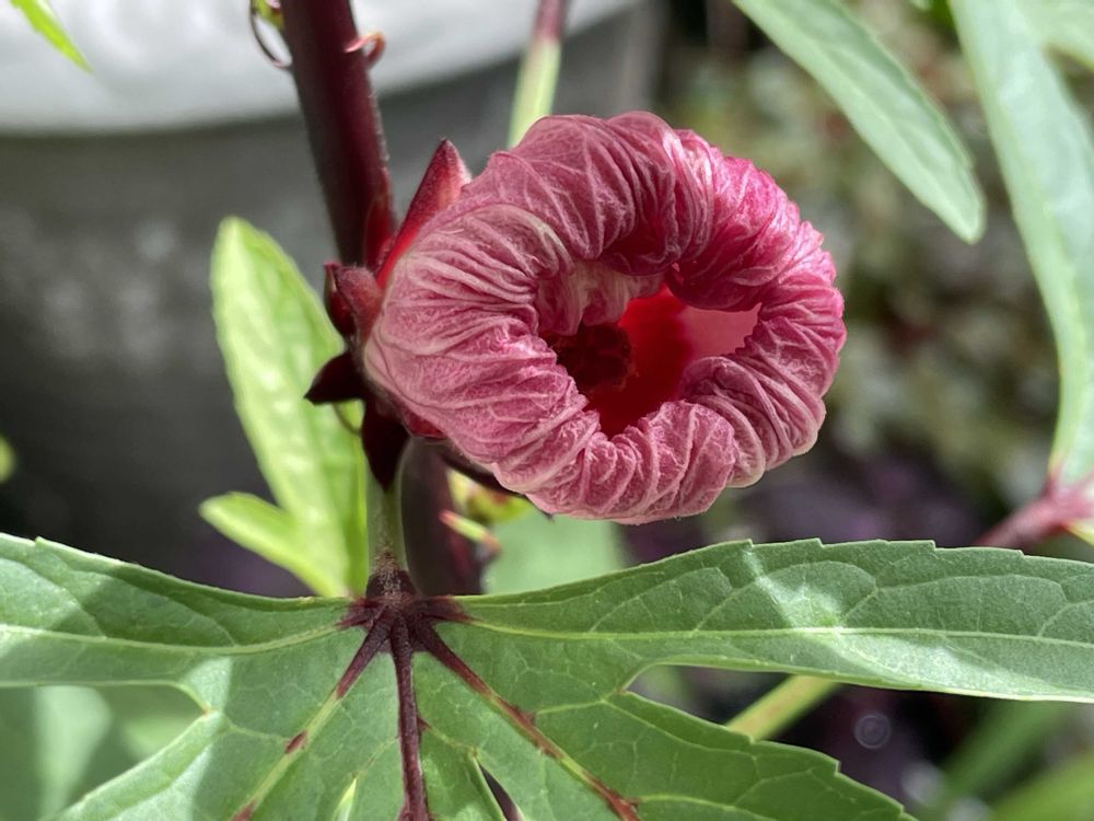 ローゼル、朝には咲いていたはず!(о´∀`о)