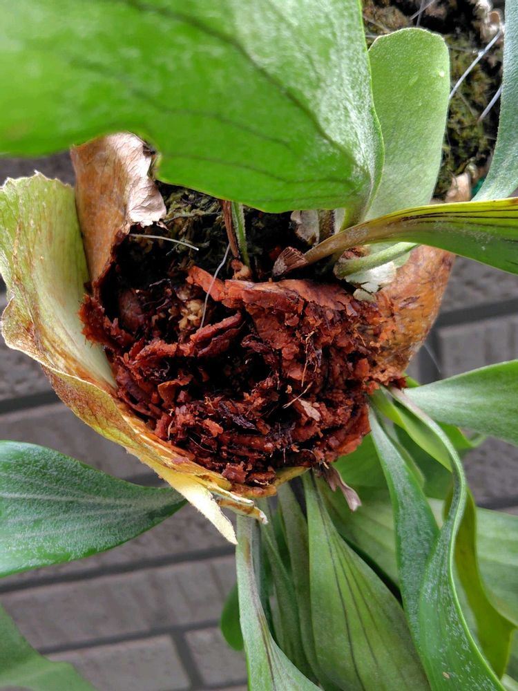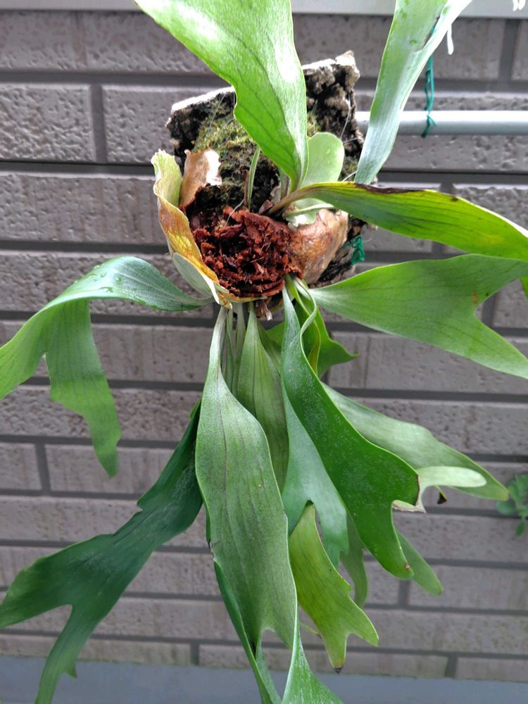 コウモリランは、枯れ葉が尖って貯水葉が巻き込むので、部分的に✂️しました。う〜ん、でも丸い形になり得るかな💦