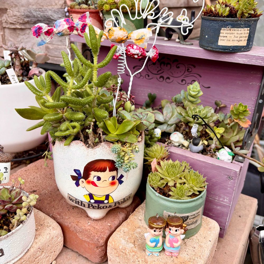 fumifumiちゃんのペコちゃん鉢の寄せ植え💚