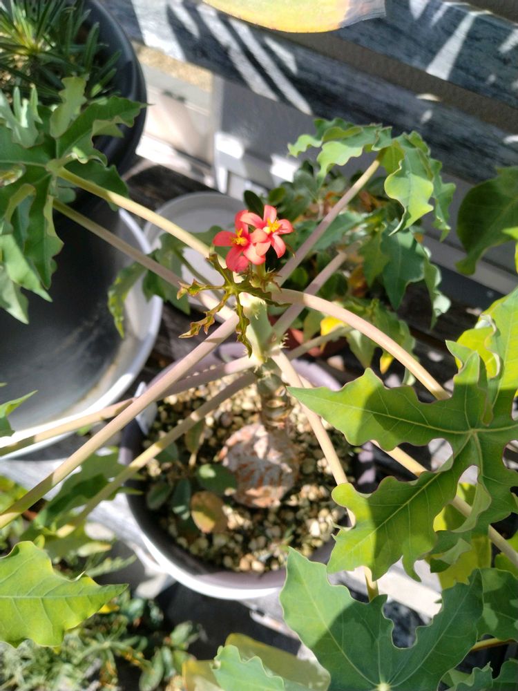 今日になってサンゴアブラギリの赤♂🌼黄♂🌼が咲いたので、両方の花粉をちょんちょんしておく。