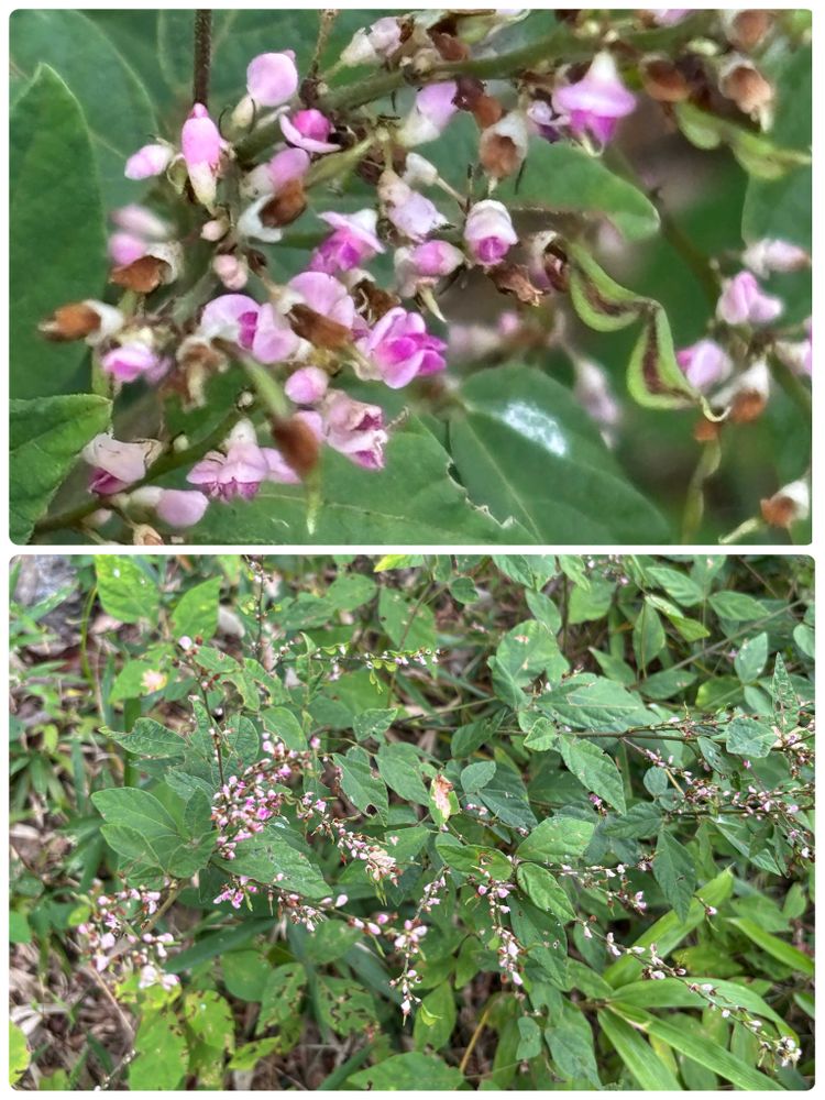 ⑶ 上は在来種で下が北米からやって来たアレチヌスビトハギです