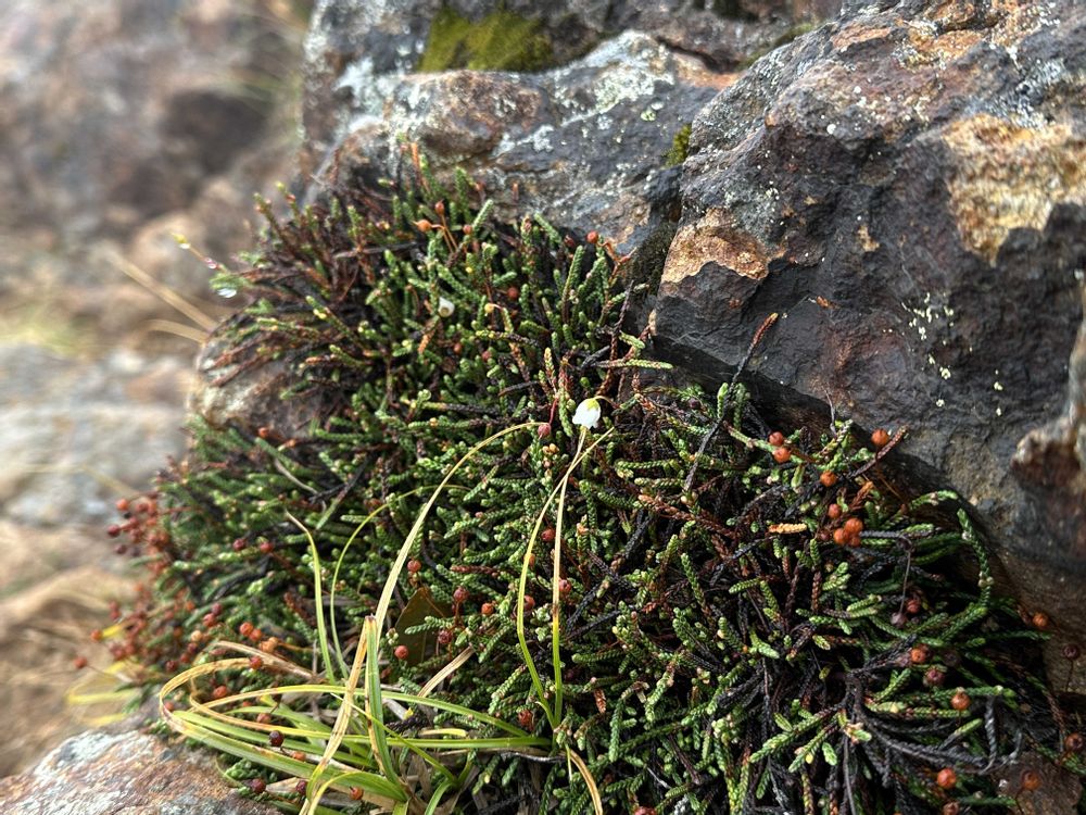 高山帯の風の強い岩場の裂け目や礫地に張り付くように生える。
