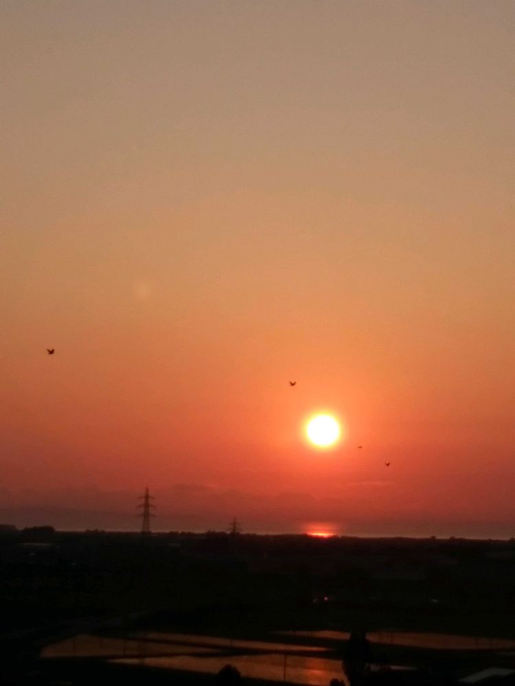 ③同じ頃の23.6.16の18:55に展望台から見た夕陽☀️と夕やけ空🌇✨