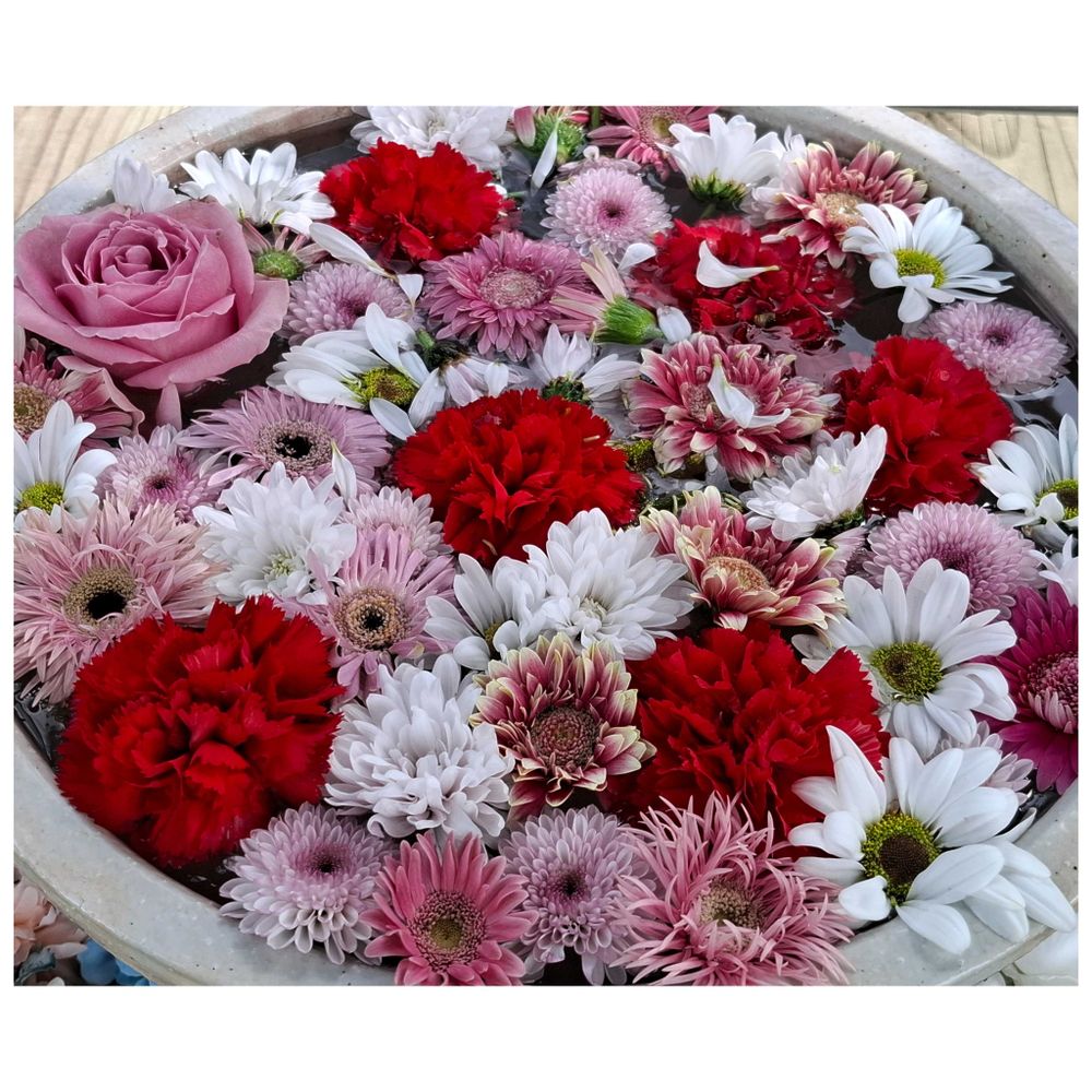 やはりプロ?の花手水は、花の大きさや色など、色々