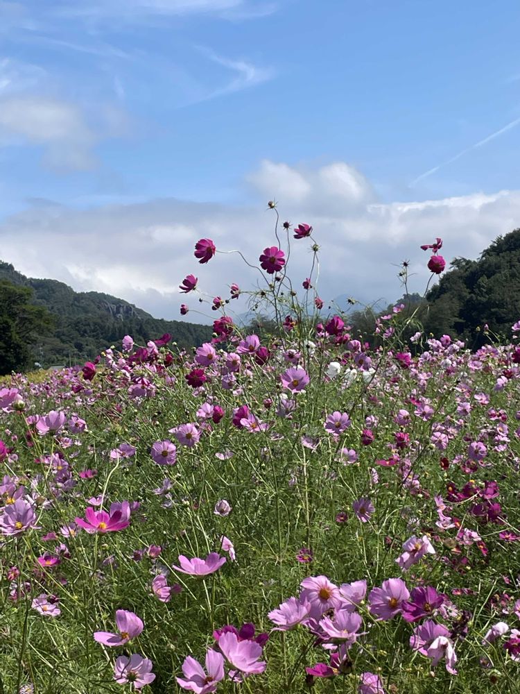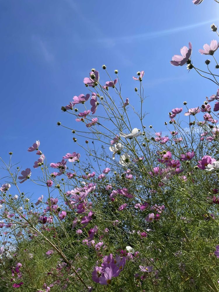 秋らしい青空に沢山のコスモスが風に揺れていました🥰