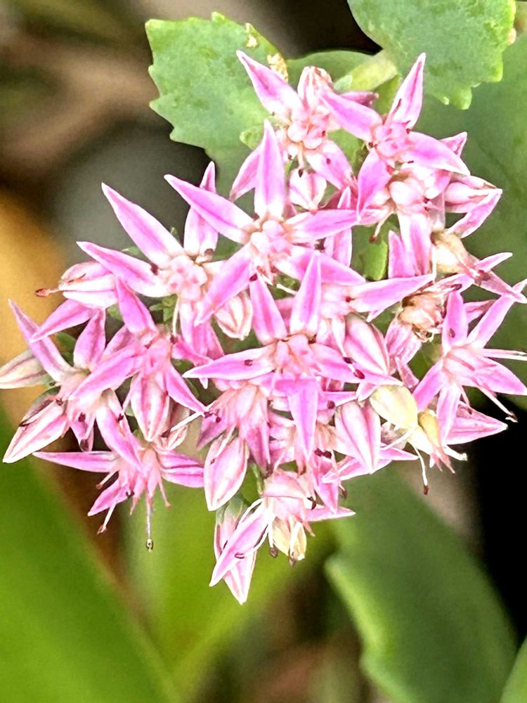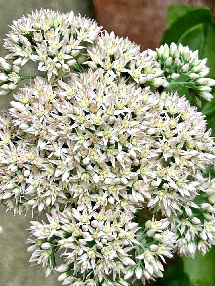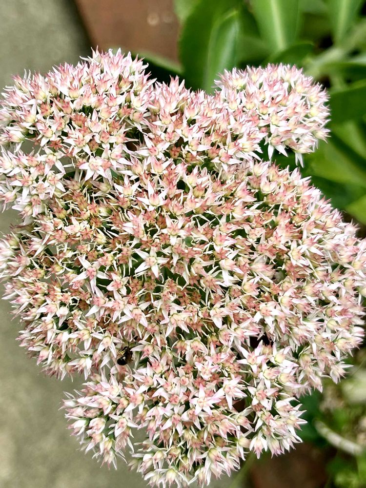 裏庭の多肉コーナーに咲くベンケイソウがとても大きな花を咲かせています🤗4枚目は春からずっと咲き続けているミセバヤです😉葉っぱの形と花の色が少し違いますね🌿💕🌿