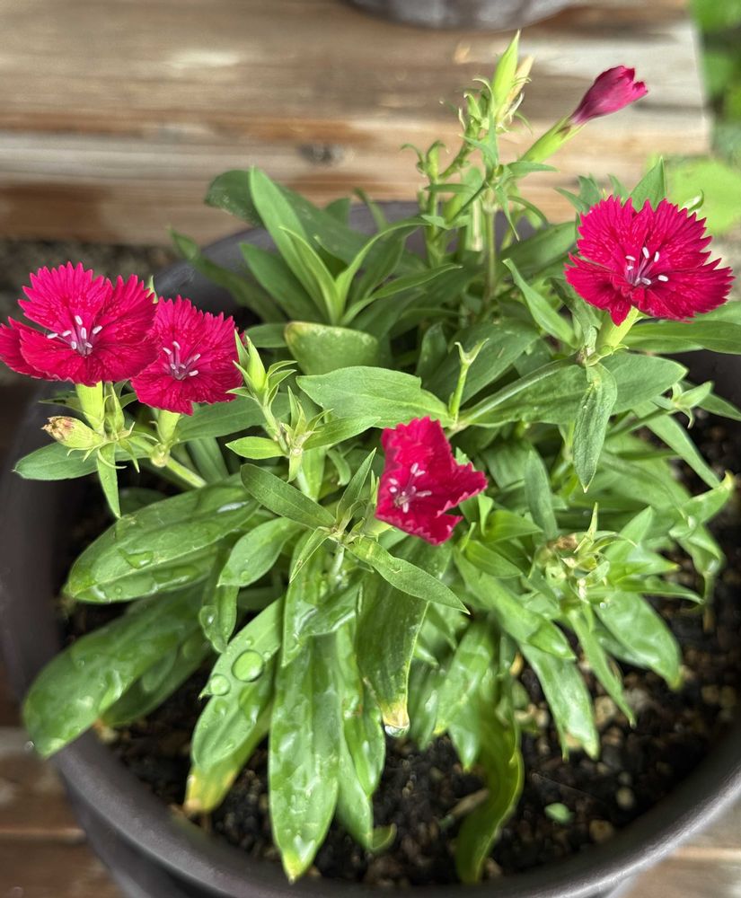ナデシコも少なくなってきたけど、まだ咲いてます🌸目が覚めるような鮮やかなこの赤い色が本当に好きです♥️
